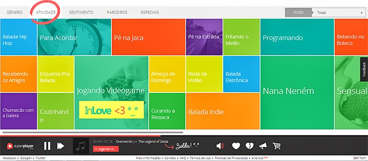 Se você se interessou e quer ouvir é só clicar aqui e acessar o menu "Atividade" e depois "Jogando Video Game". O superplayer tem várias outras playlists o legal é que da pra conhecer muita banda boa por lá. Acesse e fique tão apaixonado quanto eu! *__*