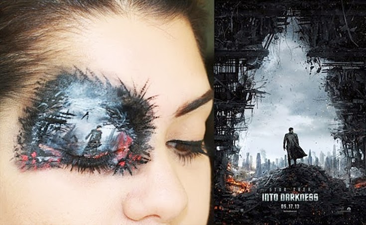 Ela fez nada mais, nada menos que: o poster promocional de Star Trek Into Darkness. Alguns brincam que ela deveria ter feito nos dois olhos, mas eu fico aqui imaginando quantas horas ela não deve ter levado. Outra coisa que eu penso é que deve ter sido tenso pra retirar toda essa make e sinceramente se fosse comigo teria pena de tirar :(. Mas, enfim... Você pode conferir a make completa nas fotos abaixo.