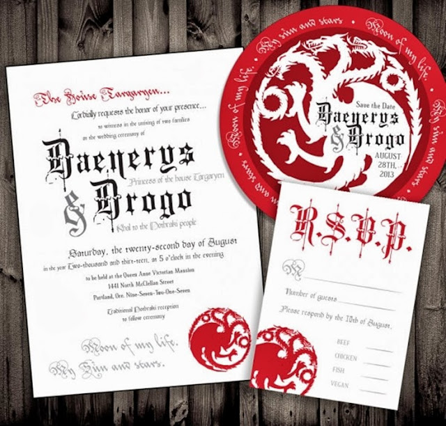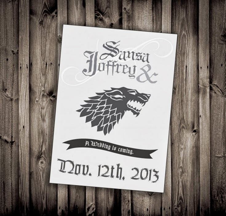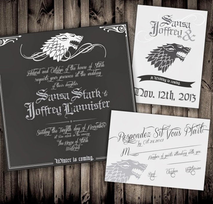 Westeros pode não ter muitos finais felizes, mas não deixe isso te influenciar! Apenas admire esses lindos convites inspirados em Game of Thrones. Os escudos da casa Stark e Targaryen foram usados para compor essa bela arte. Uma ideia um tanto quanto criativa não?