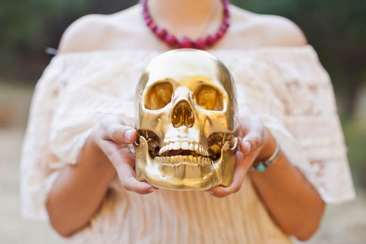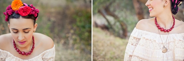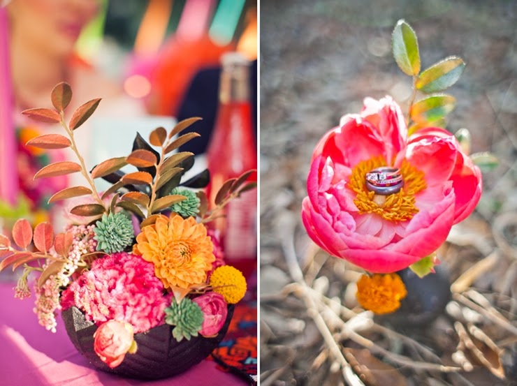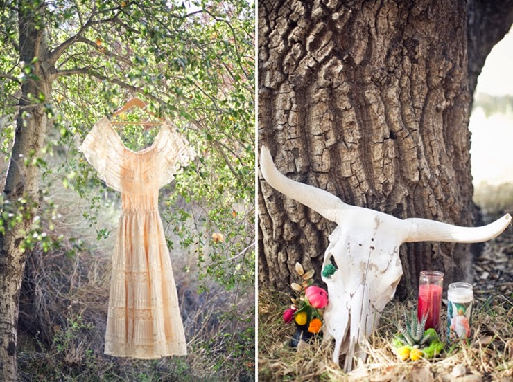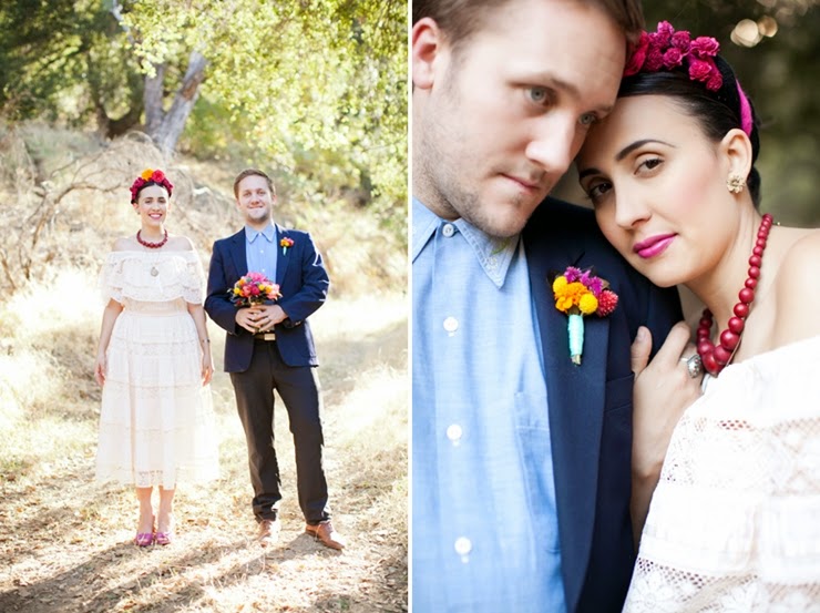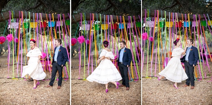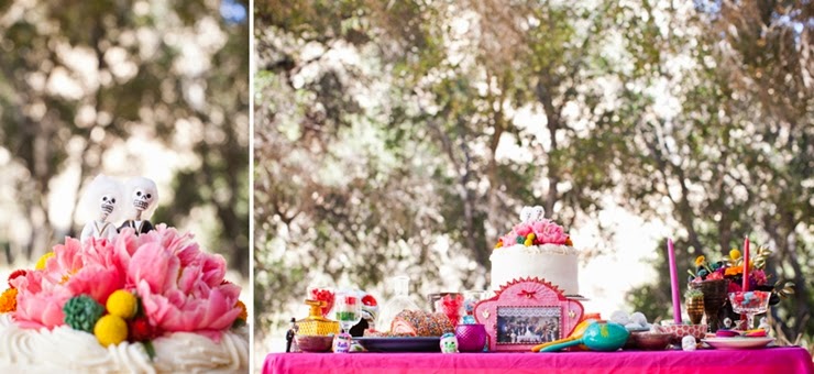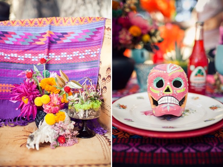 No México o "Dia de Los Muertos" é uma celebração de origem indígena, que honra os defuntos no dia 2 de novembro. Muita gente usa elementos da celebração mexicana no halloween. Tá tudo bem colorido, bem alegre e feliz. A noiva está no estilo da pintora mexicana Frida Kahlo.
