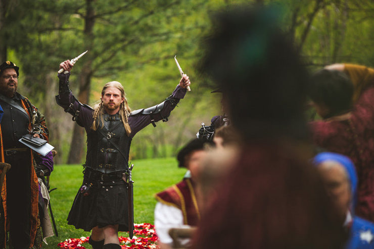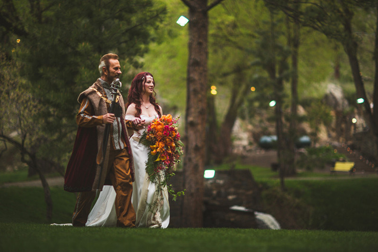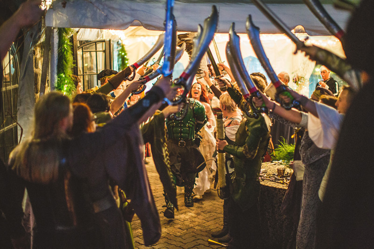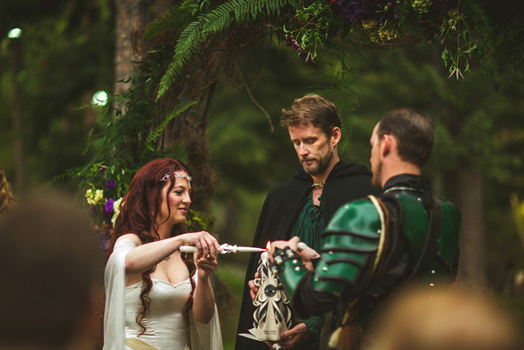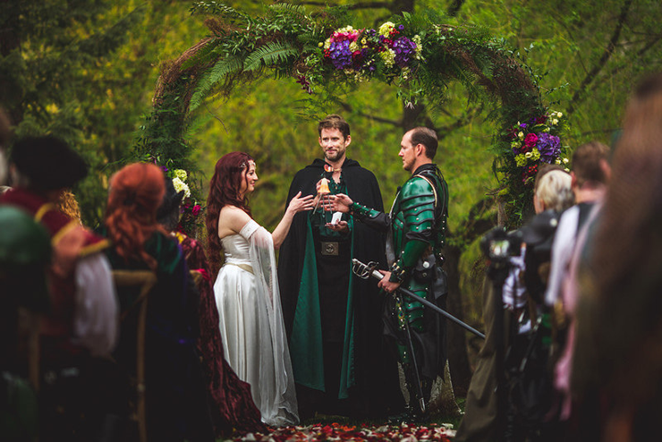 Eu queria ter palavras pra descrever esse casamento, mas eu acho que com certeza é um dos mais lindos que eu já postei aqui no blog. Os noivos se inspiraram em Senhor dos Anéis e os convidados eram obrigados a se vestir com roupas medievais sem ser necessariamente de algum personagem da trilogia. Então apareceram cavaleiros, arqueiros, elfos, magos, reis e rainhas.